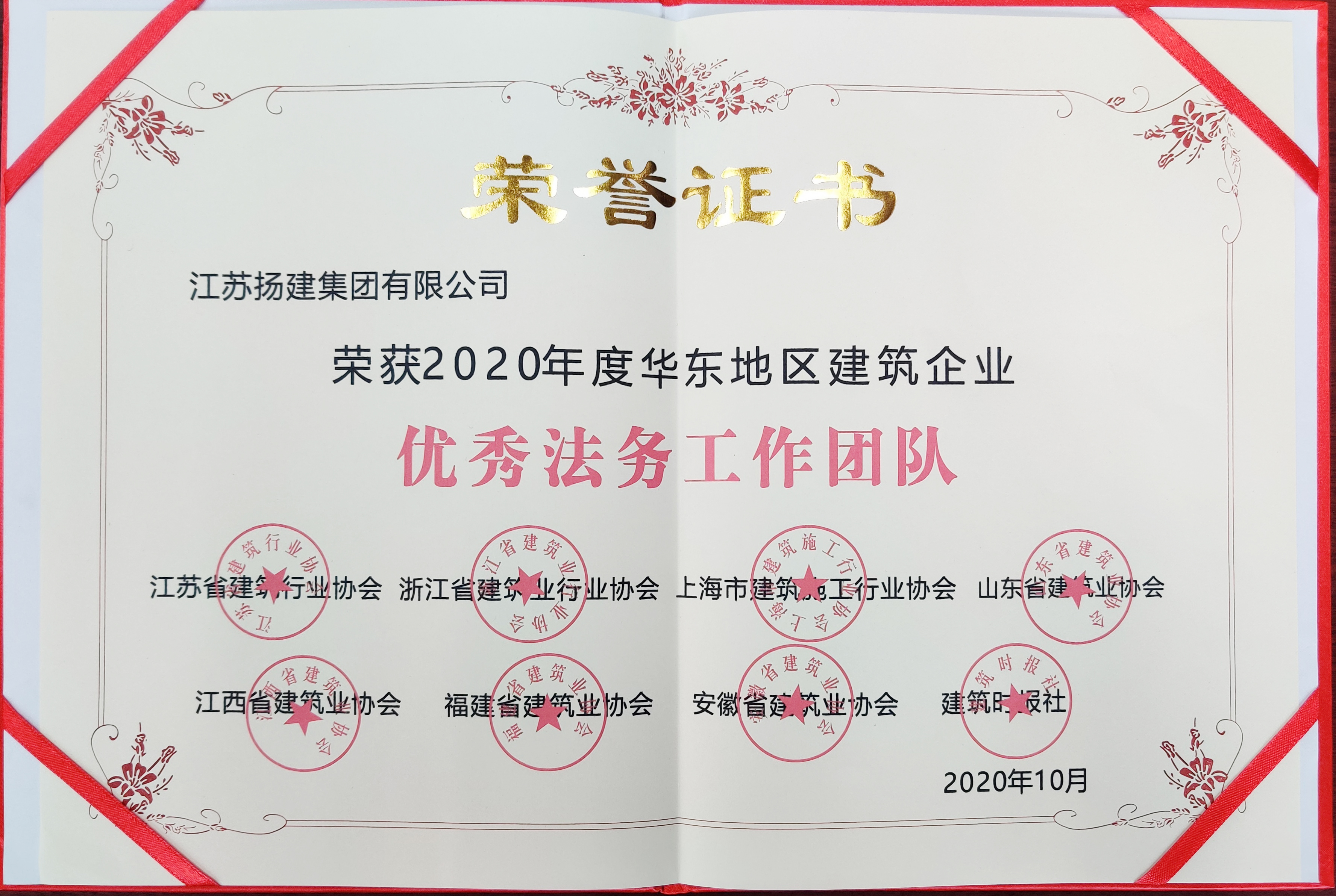 集团法务部荣膺华东建筑企业法务工作优秀团队